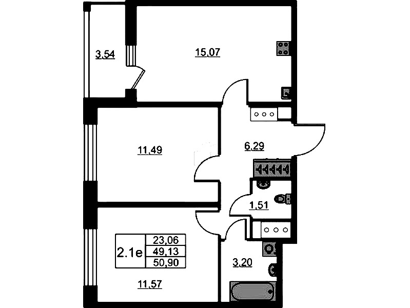 Двухкомнатная квартира на 19-ом этаже 49,13 кв.м