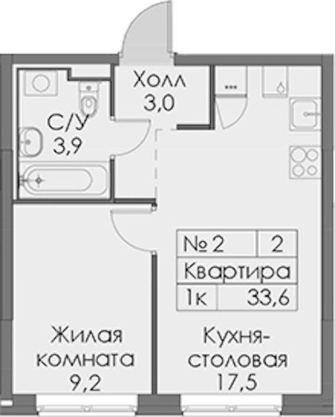 Однокомнатная квартира на 1-ом этаже 33,6 кв.м