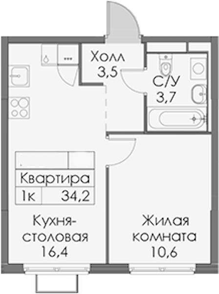 - Площадь34,2 м2