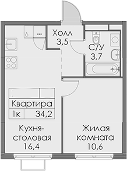 • Площадь34,2 м2