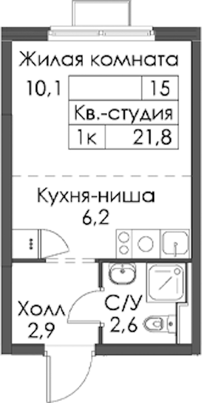 Квартира-студия на 6-ом этаже 21,8 кв.м