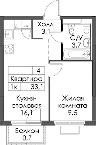 - Площадь33,1 м2