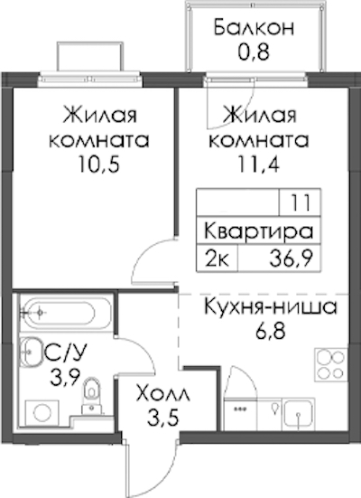 - Площадь36,9 м2