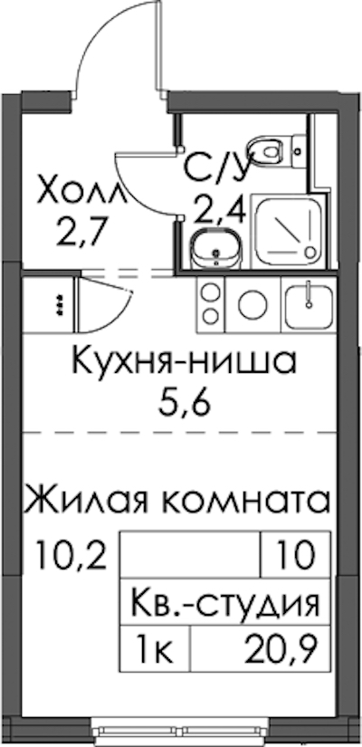Квартира-студия на 8-ом этаже 20,9 кв.м