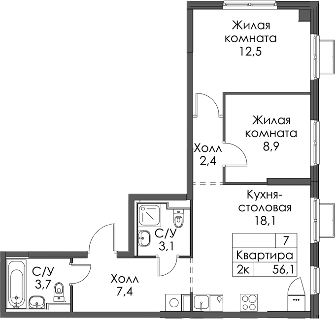 • Площадь56,1 м2