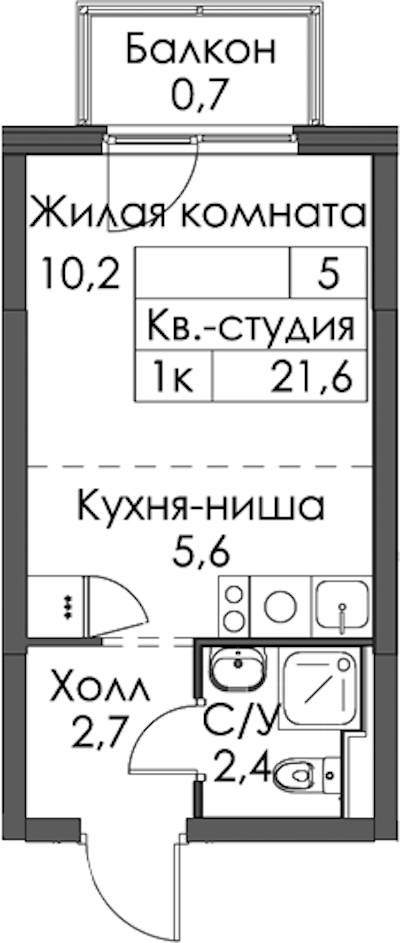• Количество комнатСтудия