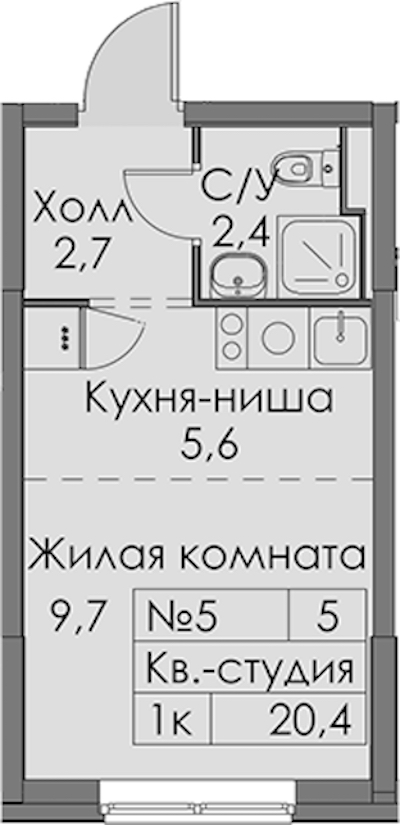 Квартира-студия на 1-ом этаже 20,4 кв.м