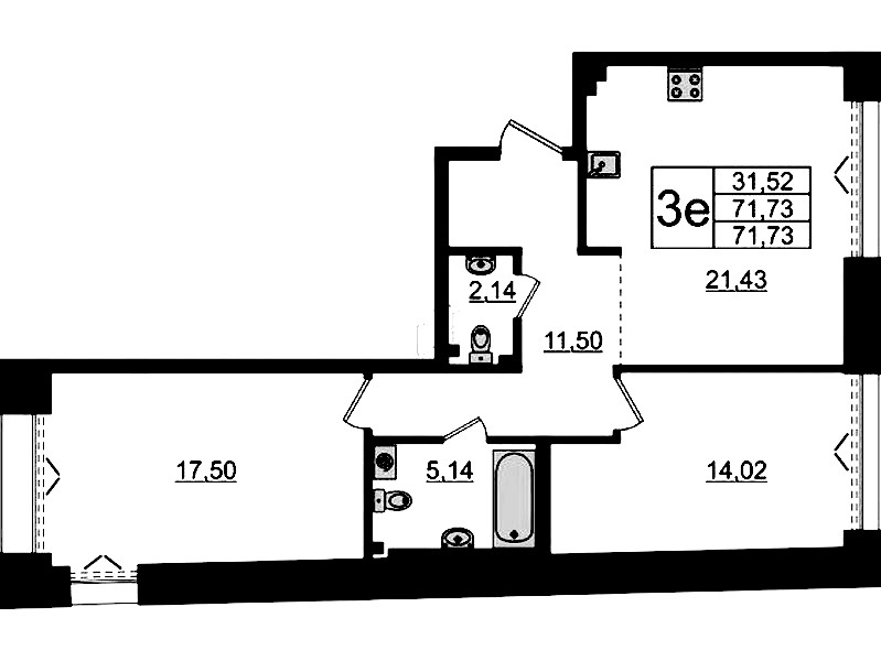 - Площадь71,73 м2