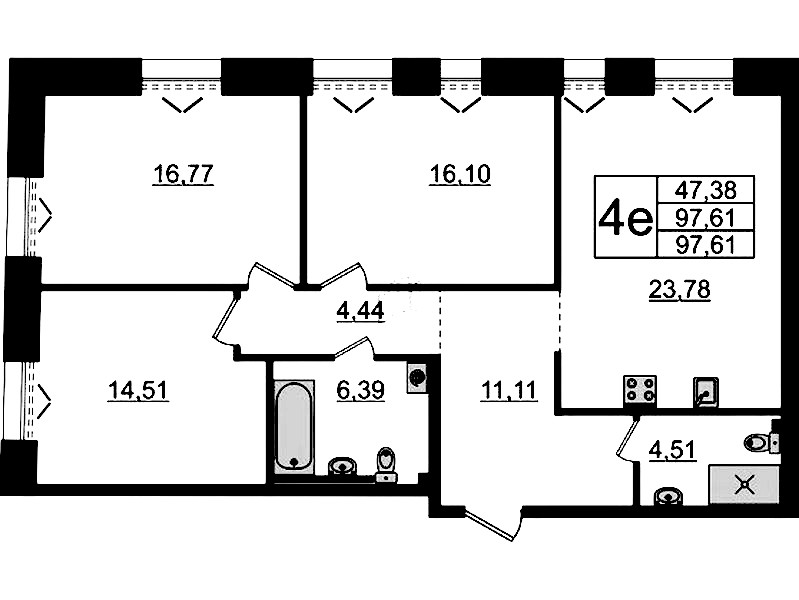 • Площадь97,61 м2