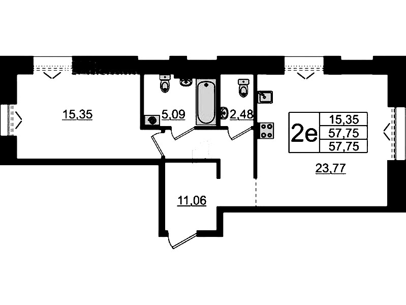 • Площадь57,75 м2
