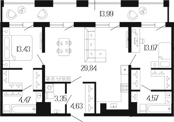 Выше представлены не все варианты квартир, а только часть популярных планировок. Введите данные и получите под ваш запрос планировки, цены, виды из окон и полную информацию по всем подходящим вариантам. 1/5