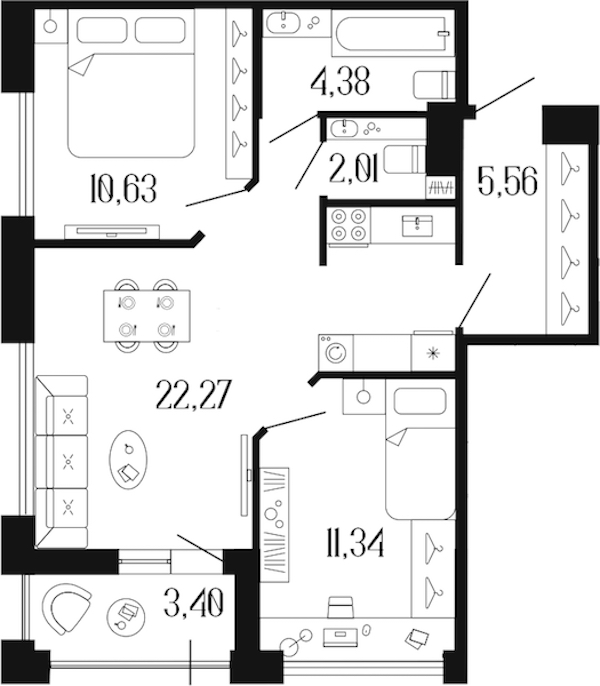 - Площадь40,64 м2