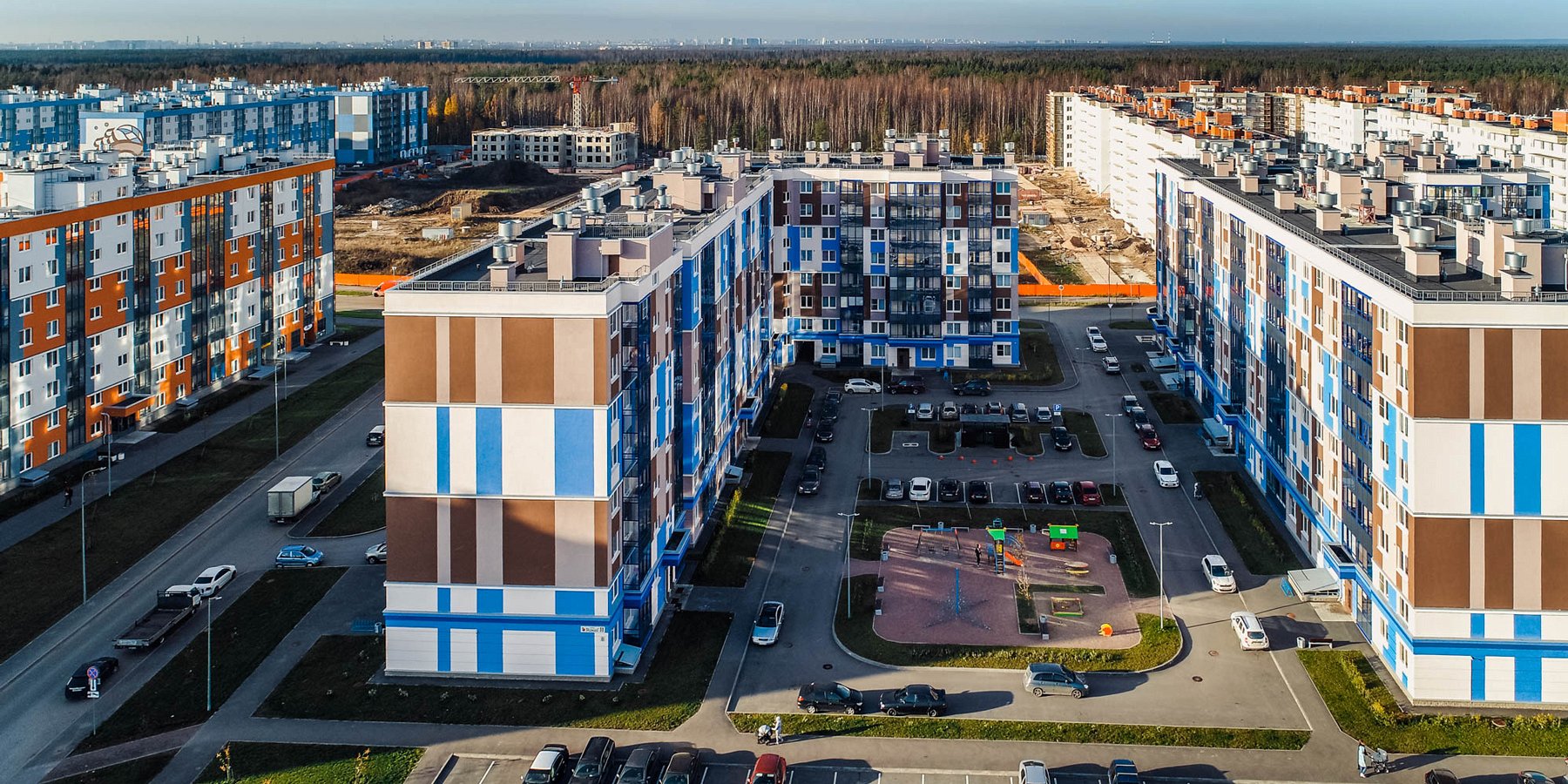 - На земельном участке 43, 2 га застройщик построит современный жилые дома, три детских сада, школу, физкультурно-спортивные сооружения, отделения банков, магазины и другие объекты инфраструктуры. Комплекс будет оснащен наземными крытыми паркингами. Первый детский сад будет введен в эксплуатацию в рамках II очереди строительства.