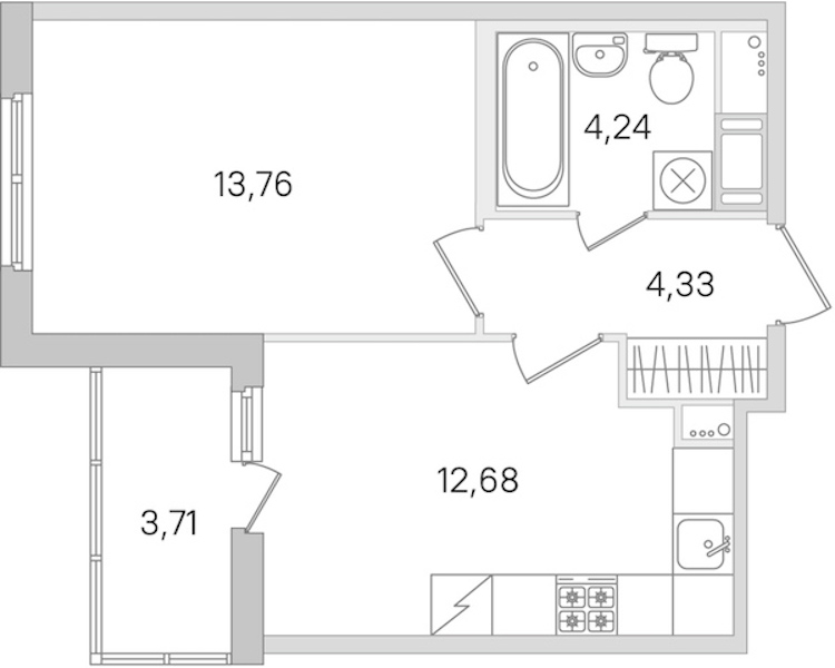 • Площадь кухни12,68 м2