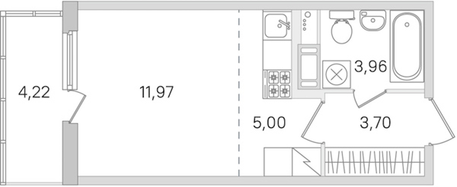 Квартира-студия на 6-ом этаже 28,85 кв.м
