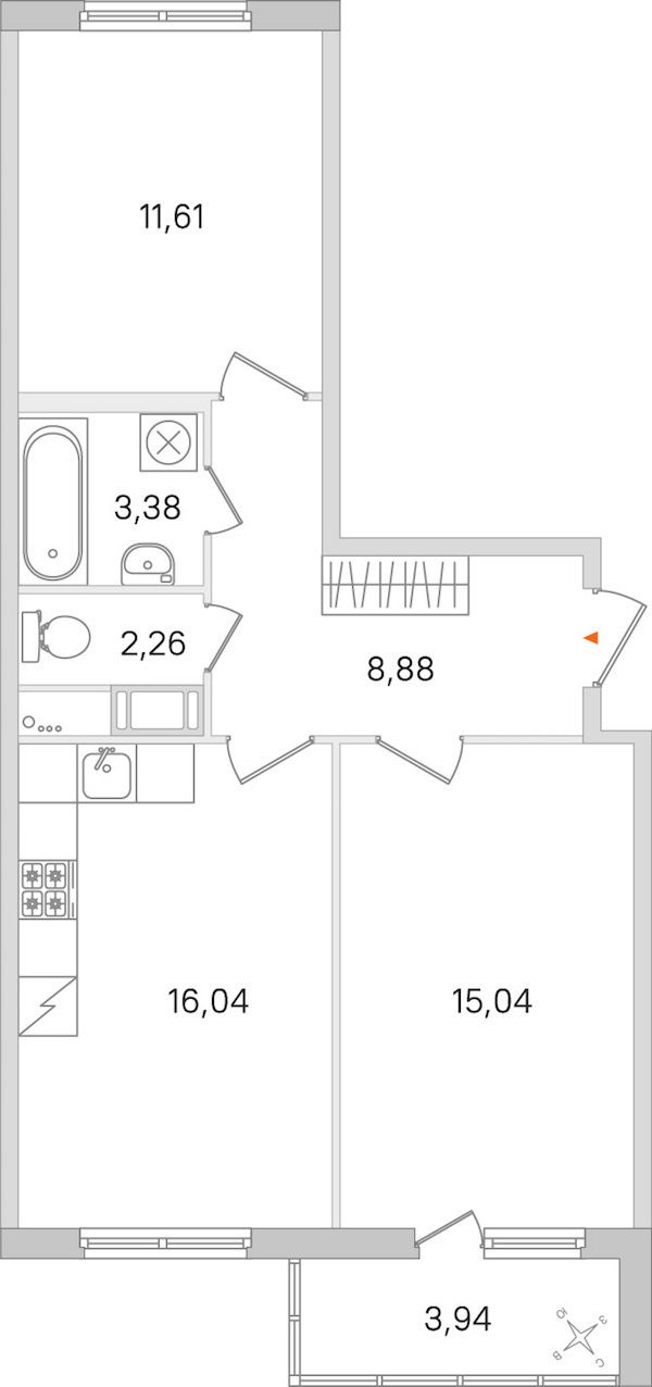 • Площадь кухни16,04 м2