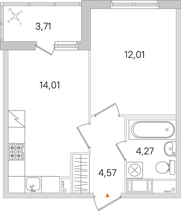 Однокомнатная квартира на 8-ом этаже 34,86 кв.м