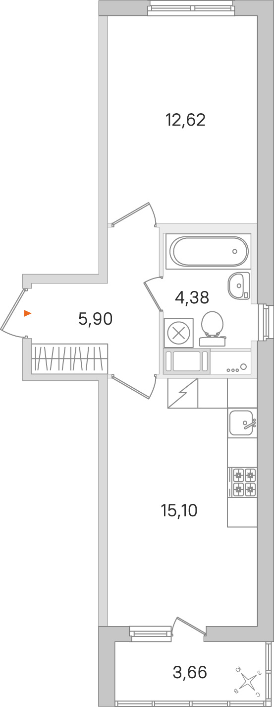 - Площадь кухни15,1 м2