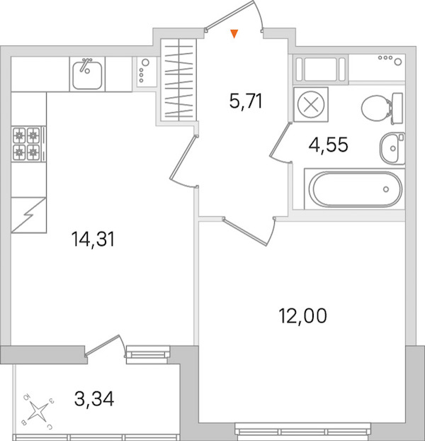 Однокомнатная квартира на 4-ом этаже 36,57 кв.м