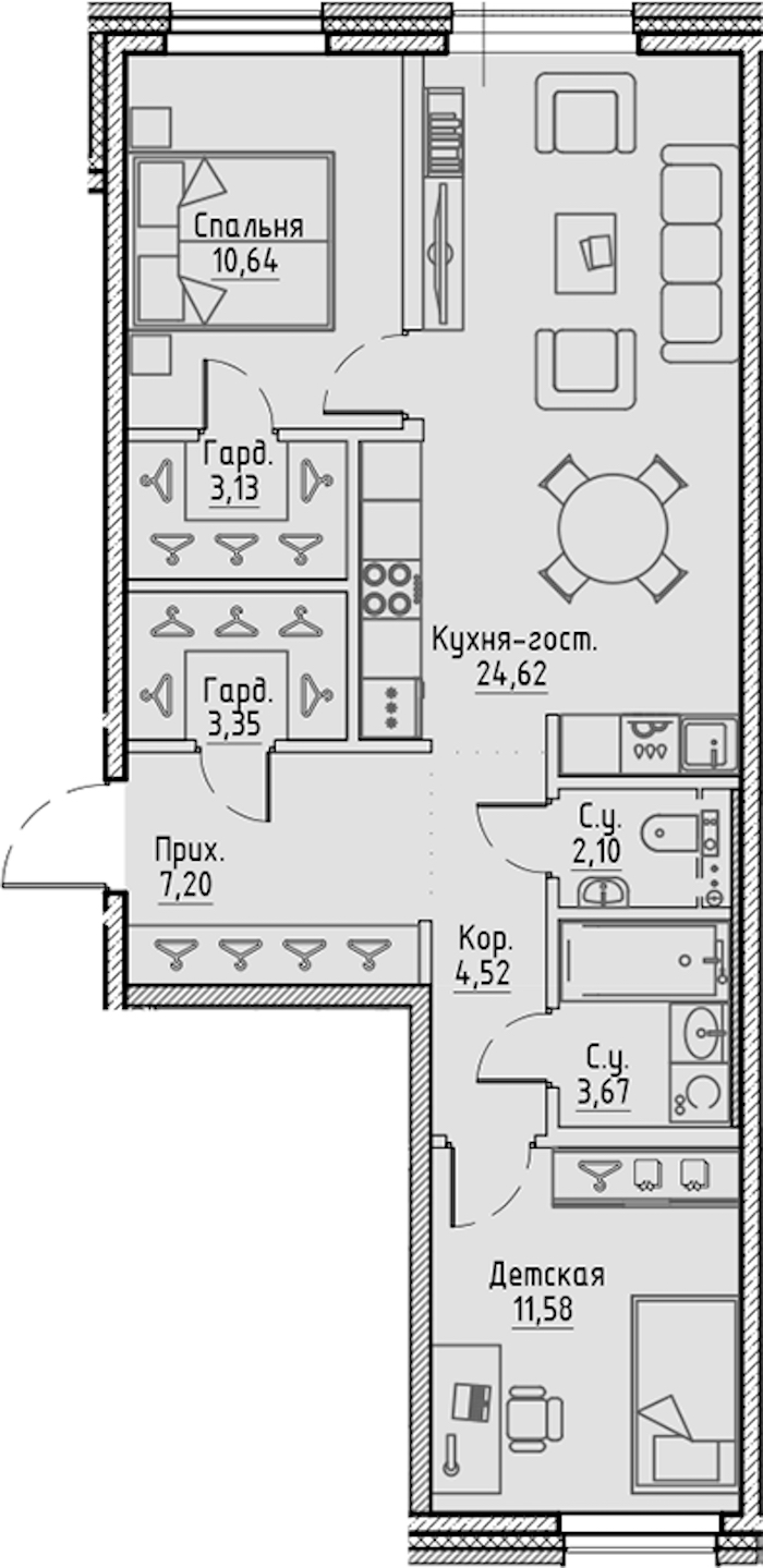 - Площадь кухни24,62 м2