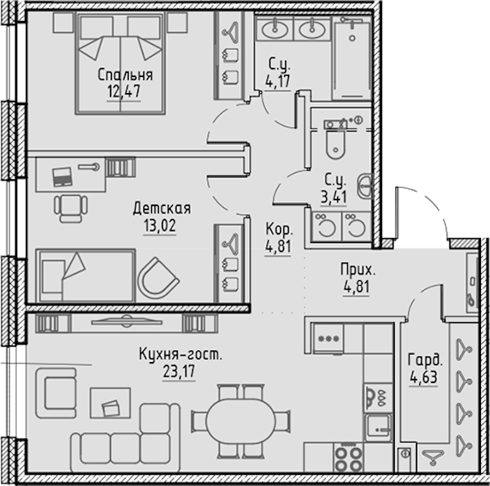 Выше представлены не все варианты квартир, а только часть популярных планировок. Введите данные и получите под ваш запрос планировки, цены, виды из окон и полную информацию по всем подходящим вариантам. 1/5