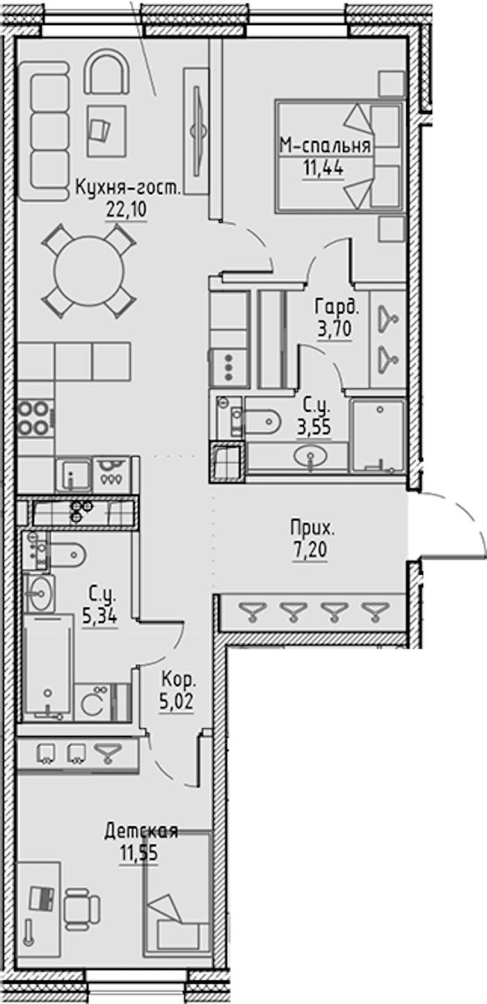 • Площадь кухни22,1 м2