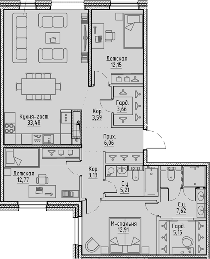 Трёхкомнатная квартира на 4-ом этаже 105,73 кв.м