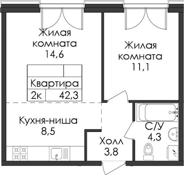 • Площадь42,3 м2