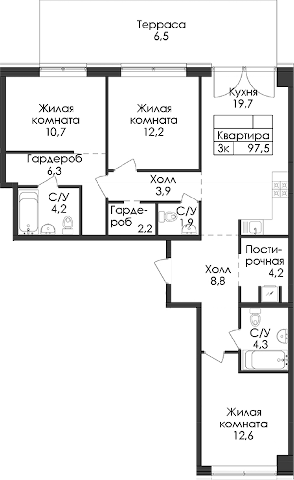 • Площадь97,5 м2
