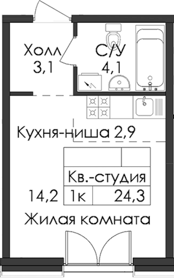 • Площадь24,3 м2