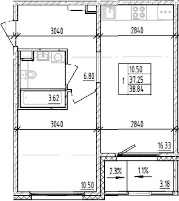 • Площадь38,84 м2