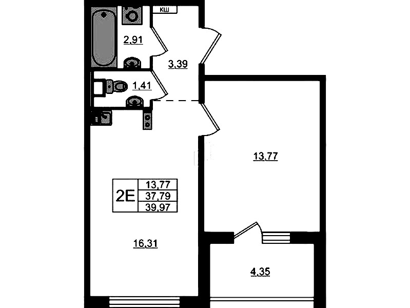 - Площадь39,97 м2
