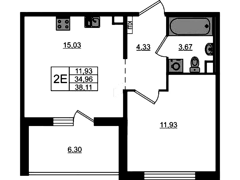 - Площадь38,11 м2