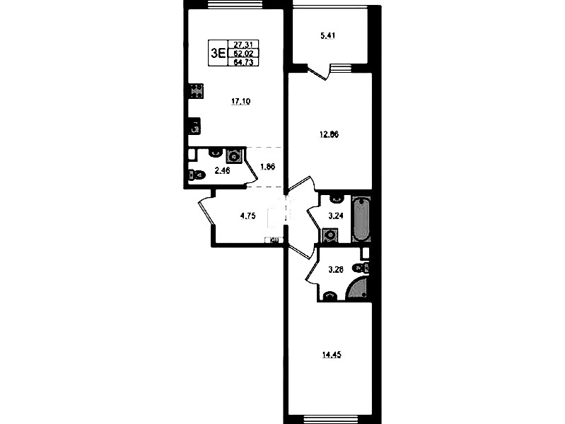 • Площадь64,73 м2