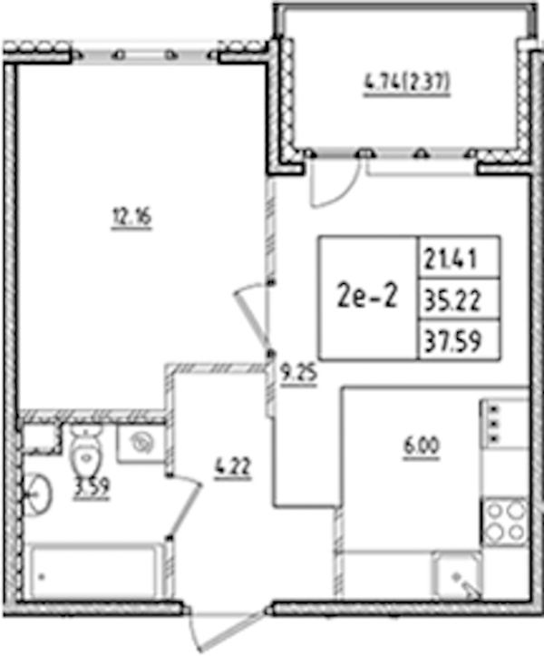 • Площадь37,59 м2