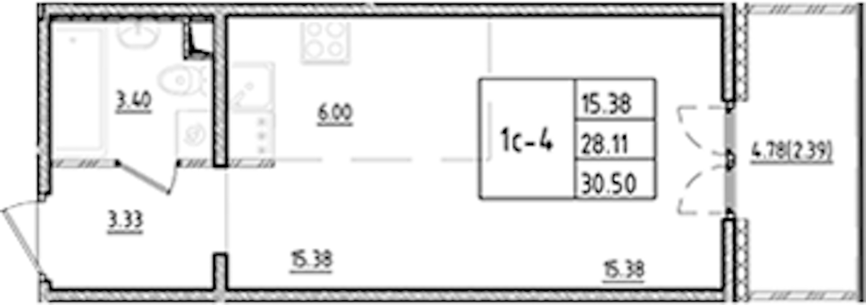 Квартира-студия на 3-ем этаже 30,5 кв.м