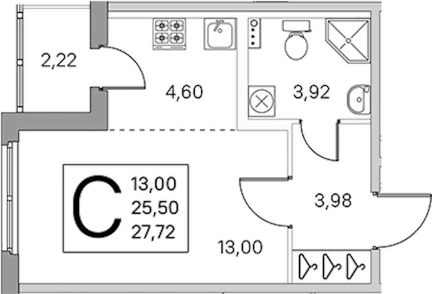 Квартира-студия на 1-ом этаже 25,5 кв.м