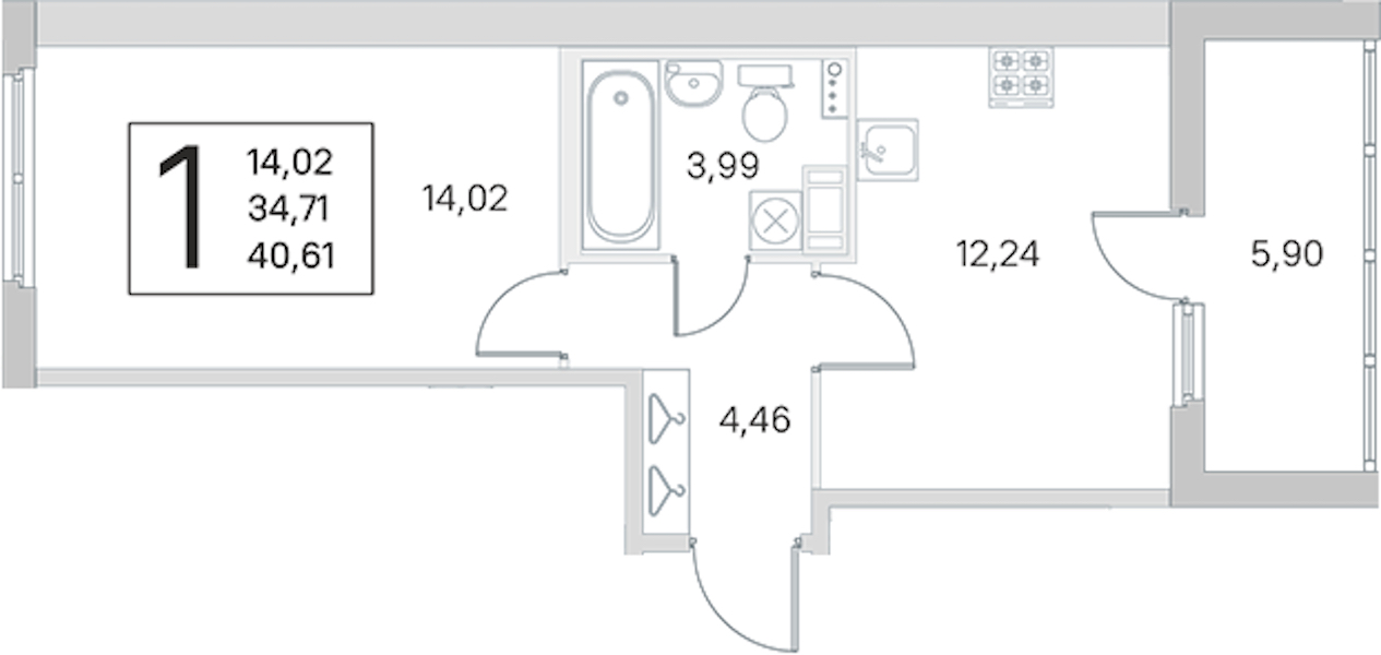 Однокомнатная квартира на 2-ом этаже 34,71 кв.м