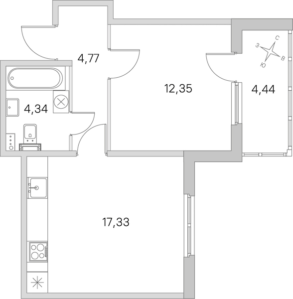 • Площадь кухни17,33 м2