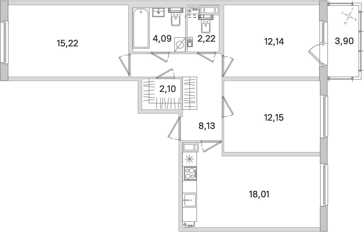 - Площадь кухни18,01 м2