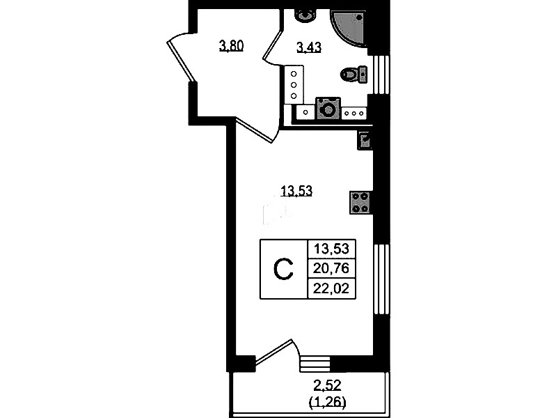 - Площадь22,02 м2