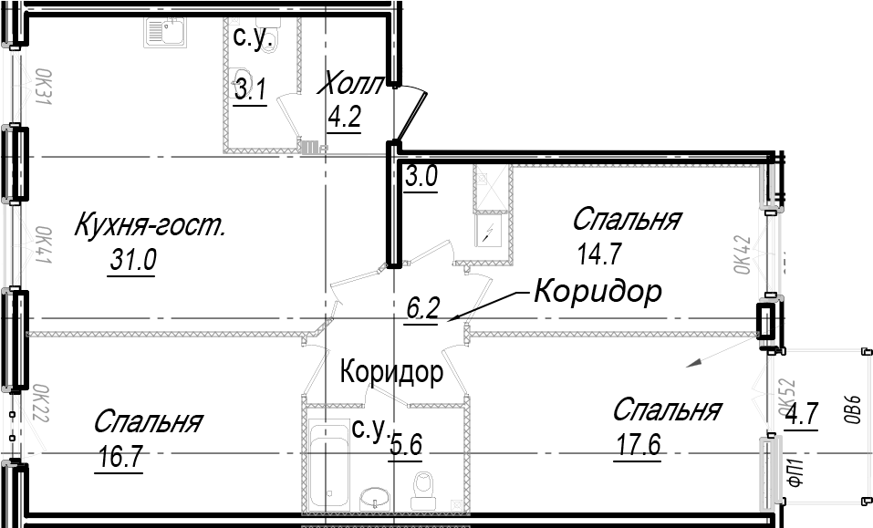 Трёхкомнатная квартира на 6-ом этаже 102,3 кв.м