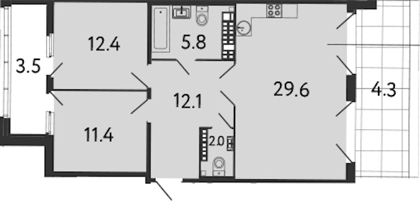 Двухкомнатная квартира на 8-ом этаже 73,3 кв.м