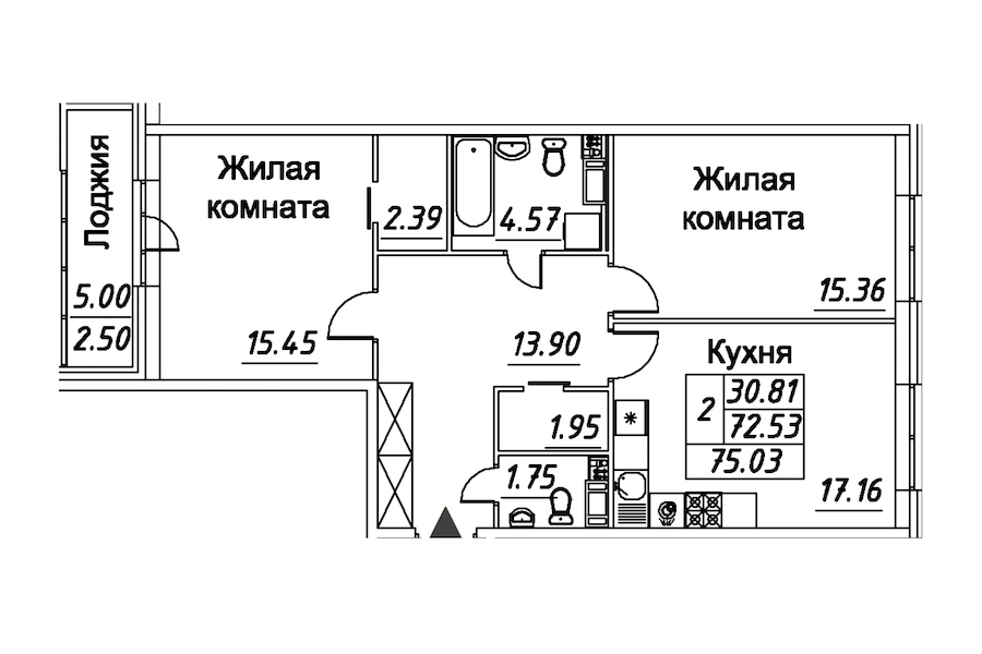 - Площадь75,03 м2