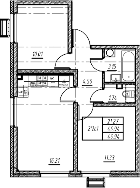 - Площадь46,94 м2