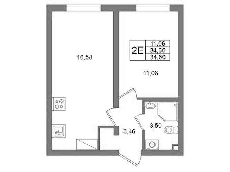 Однокомнатная квартира на 4-ом этаже 34,6 кв.м