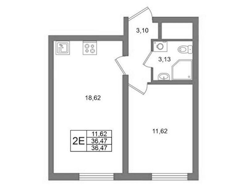 Однокомнатная квартира на 7-ом этаже 36,47 кв.м