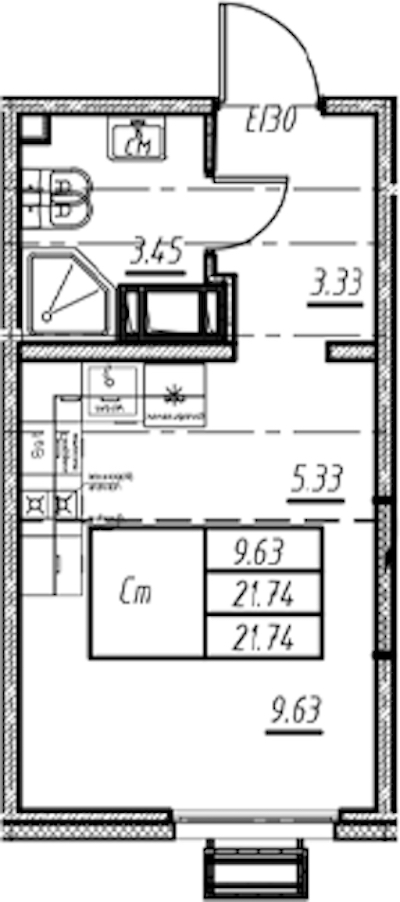 • Площадь21,74 м2