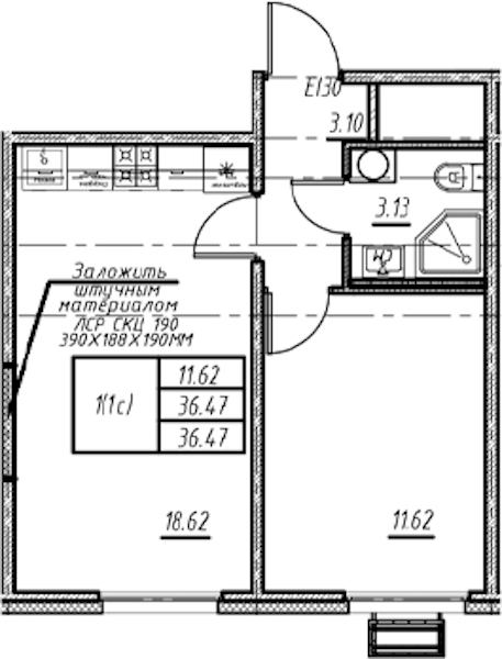 - Площадь36,47 м2