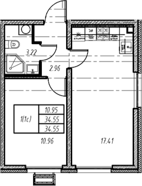- Площадь34,55 м2